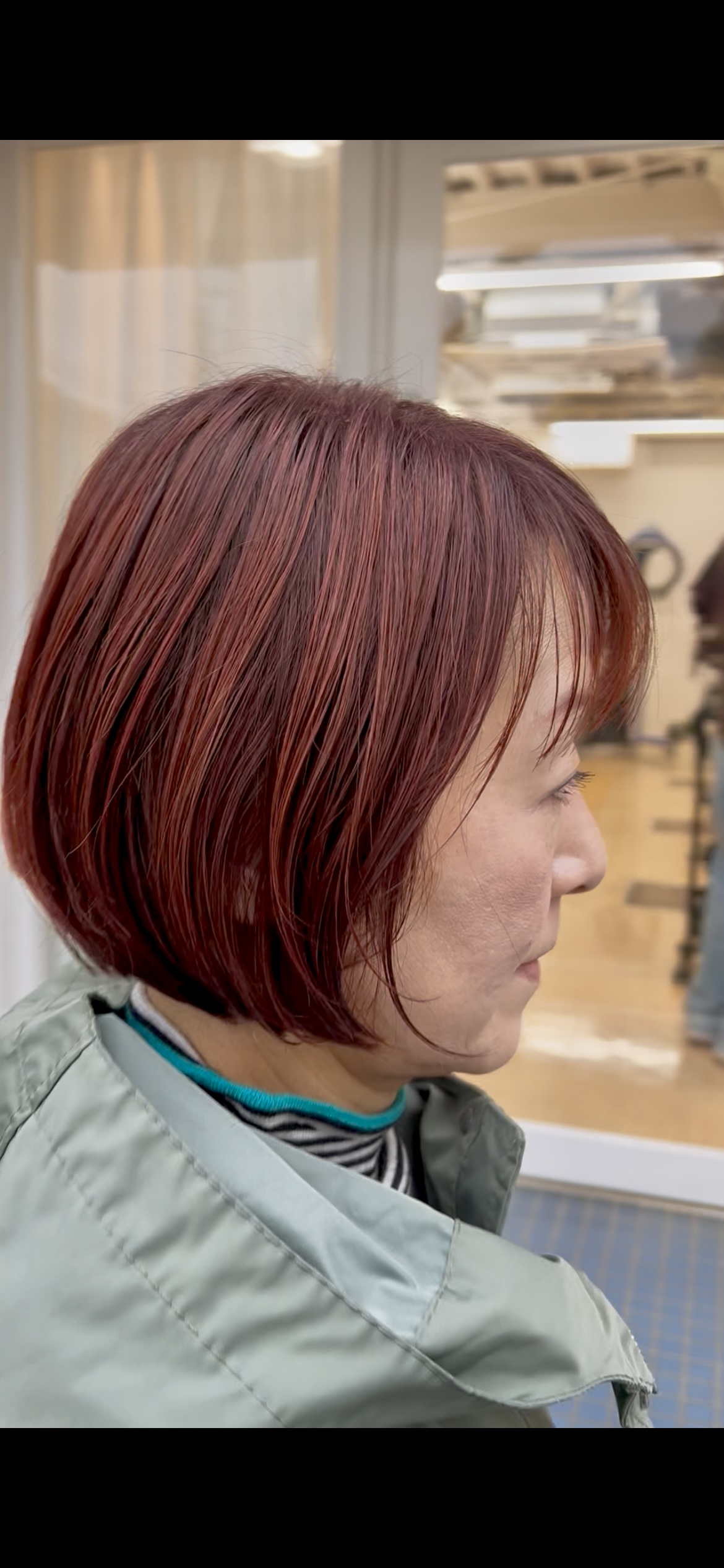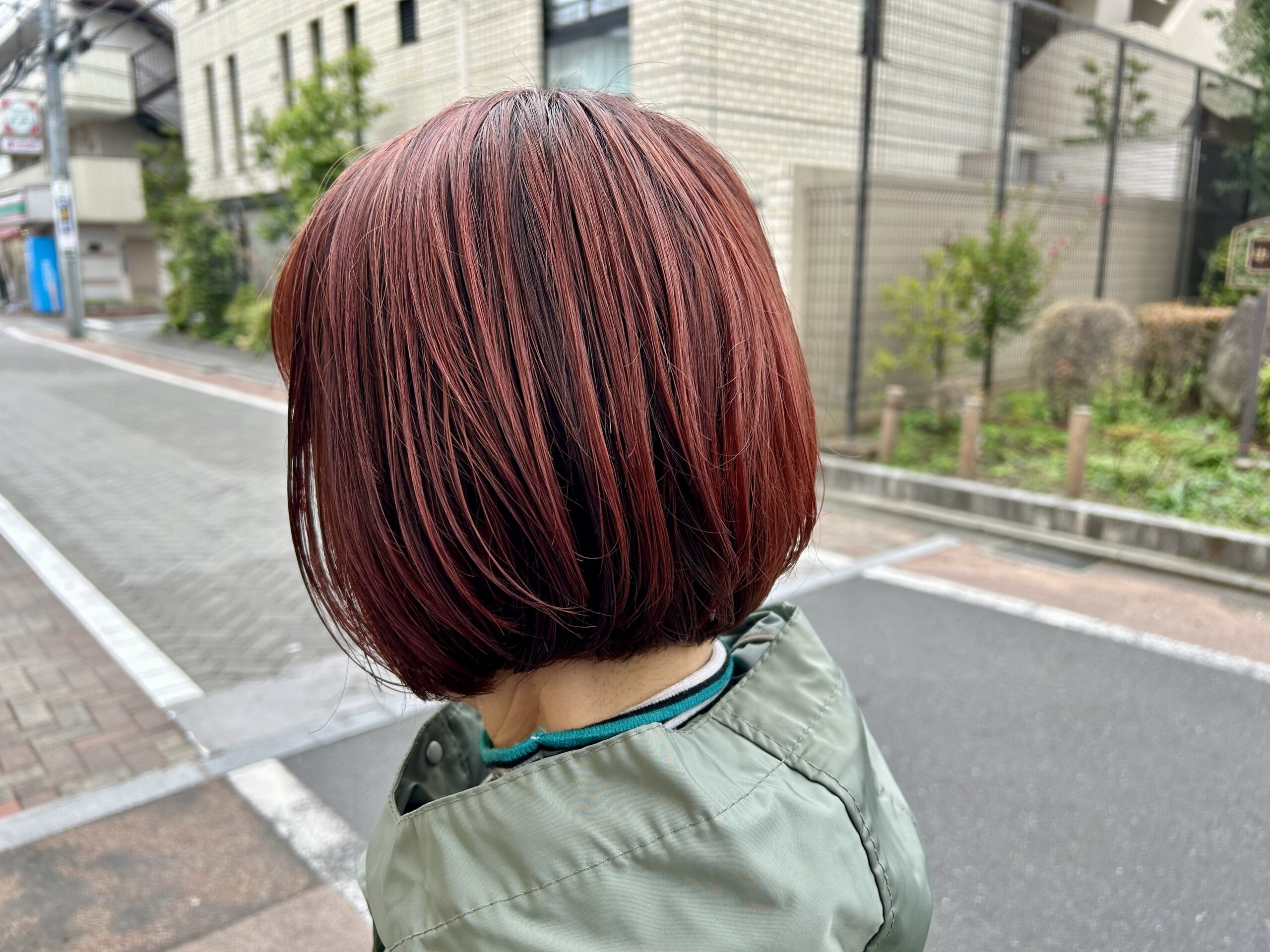 さあ、「本日のお客様。」シリーズは、ソフトめなバレイヤージュを施し、ピンクレッドをオンカラーされたお客様!