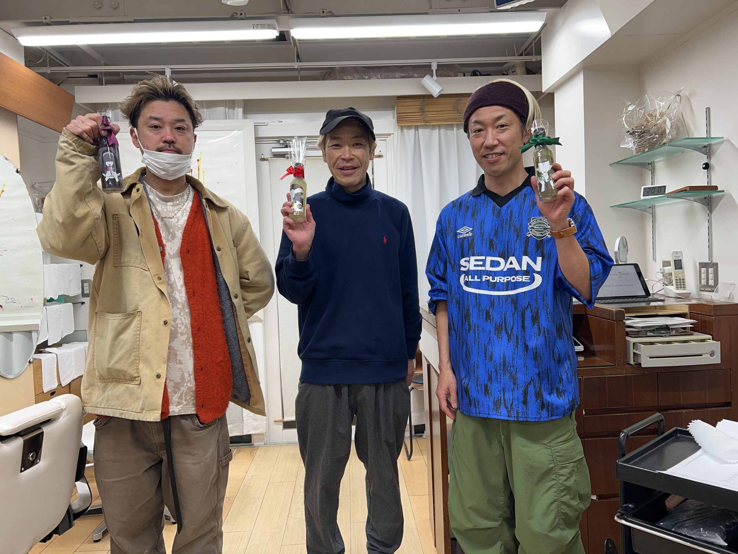 毎年年末のご挨拶にお客様から頂くお酒を手に最終日の営業後で「お疲れ様でした」