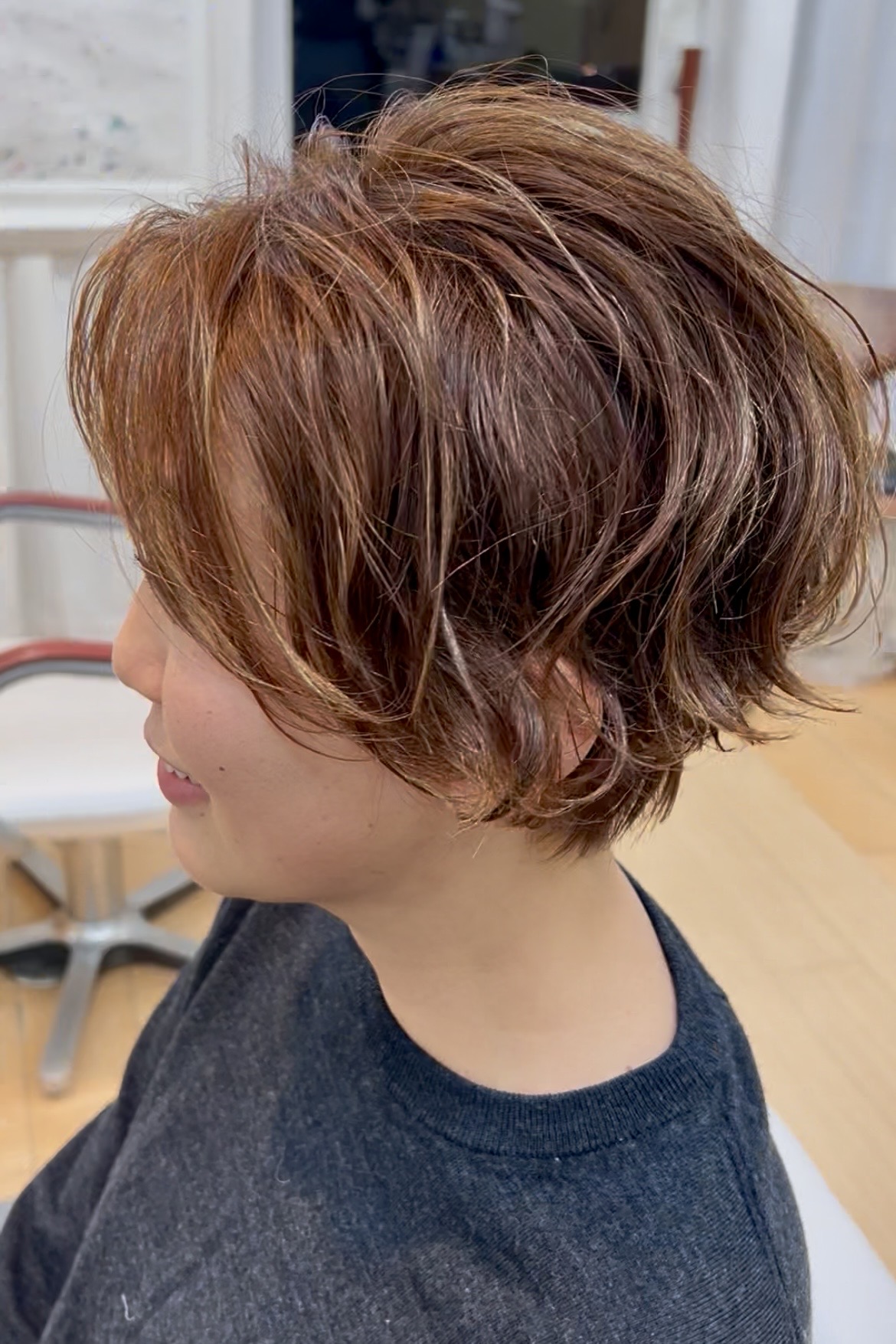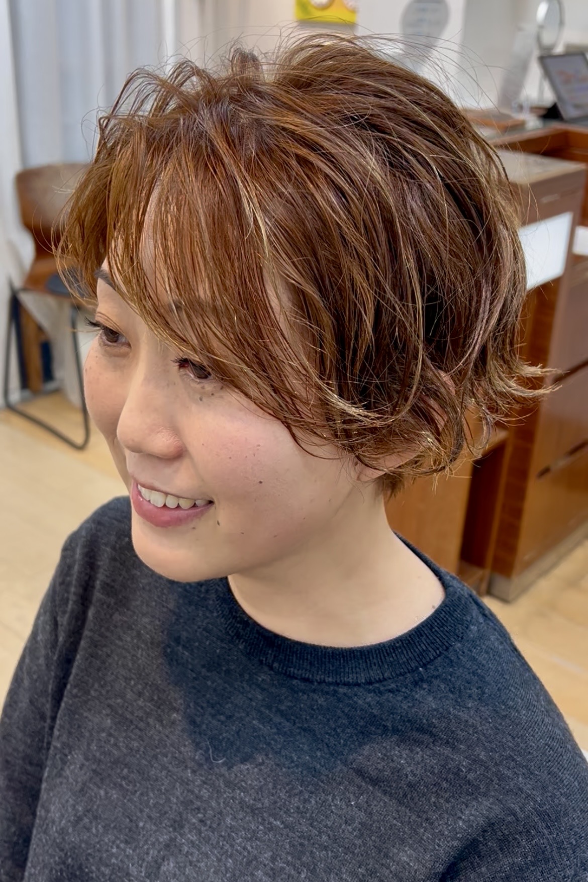 いつもハイライトやかわいいショートで髪型を楽しんで頂いているお客様が、今回久しぶりにパーマをしてくれました^o^