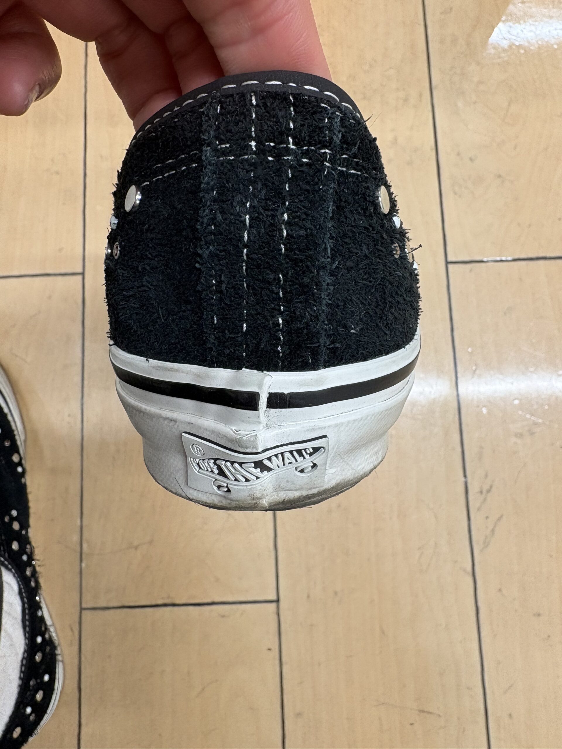 分かりづらいですが踵の当て布が普通は2本ですが4本の線で刺繍されています