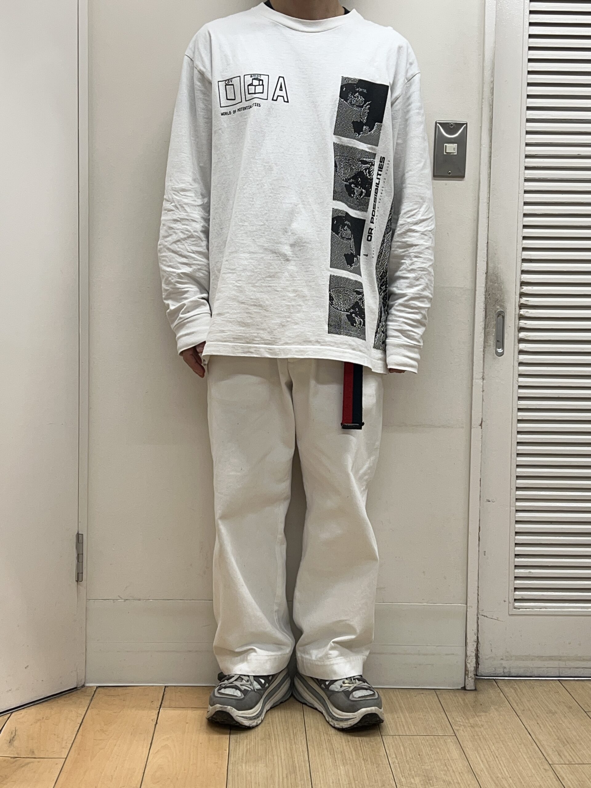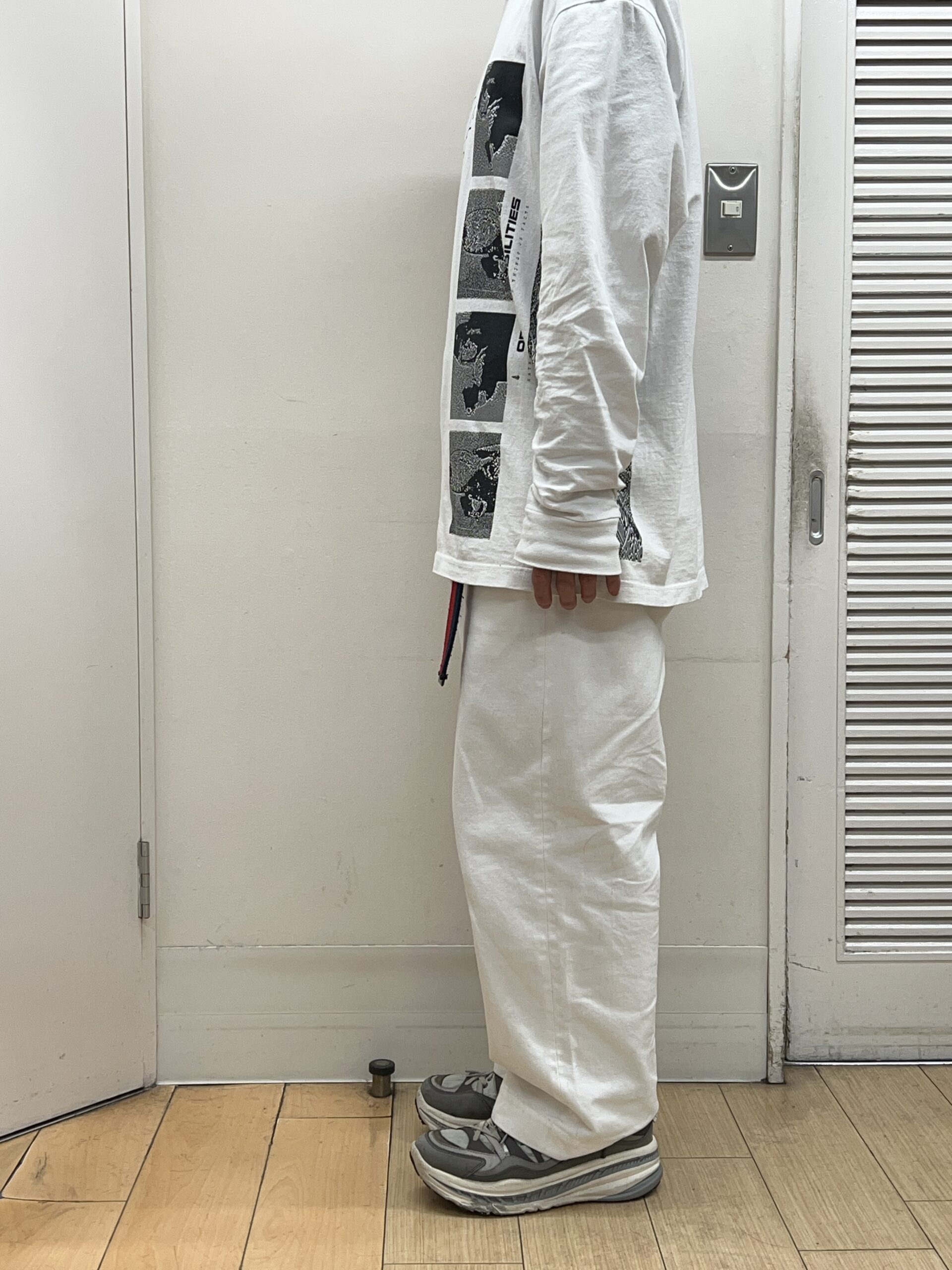 セットアップのようなコーディネートをしようと思って、白×白で着ます!