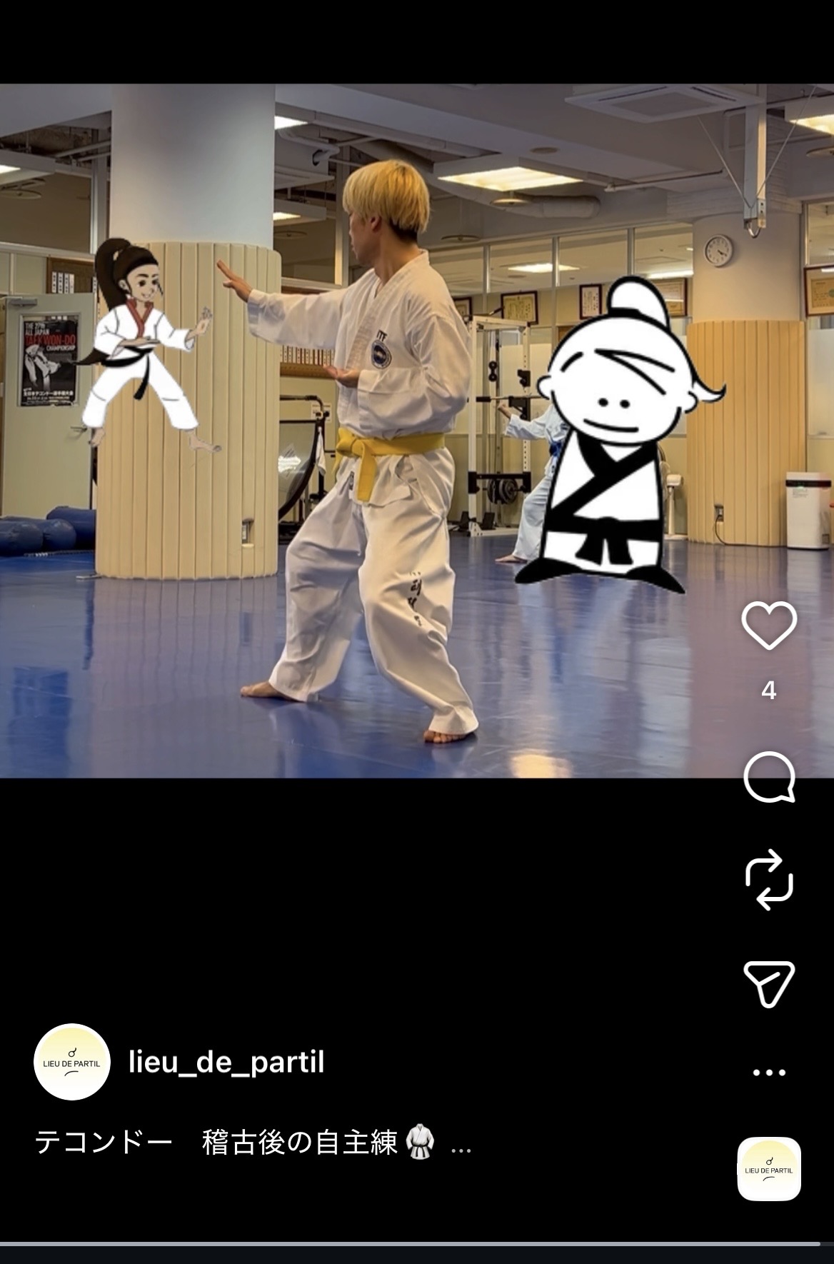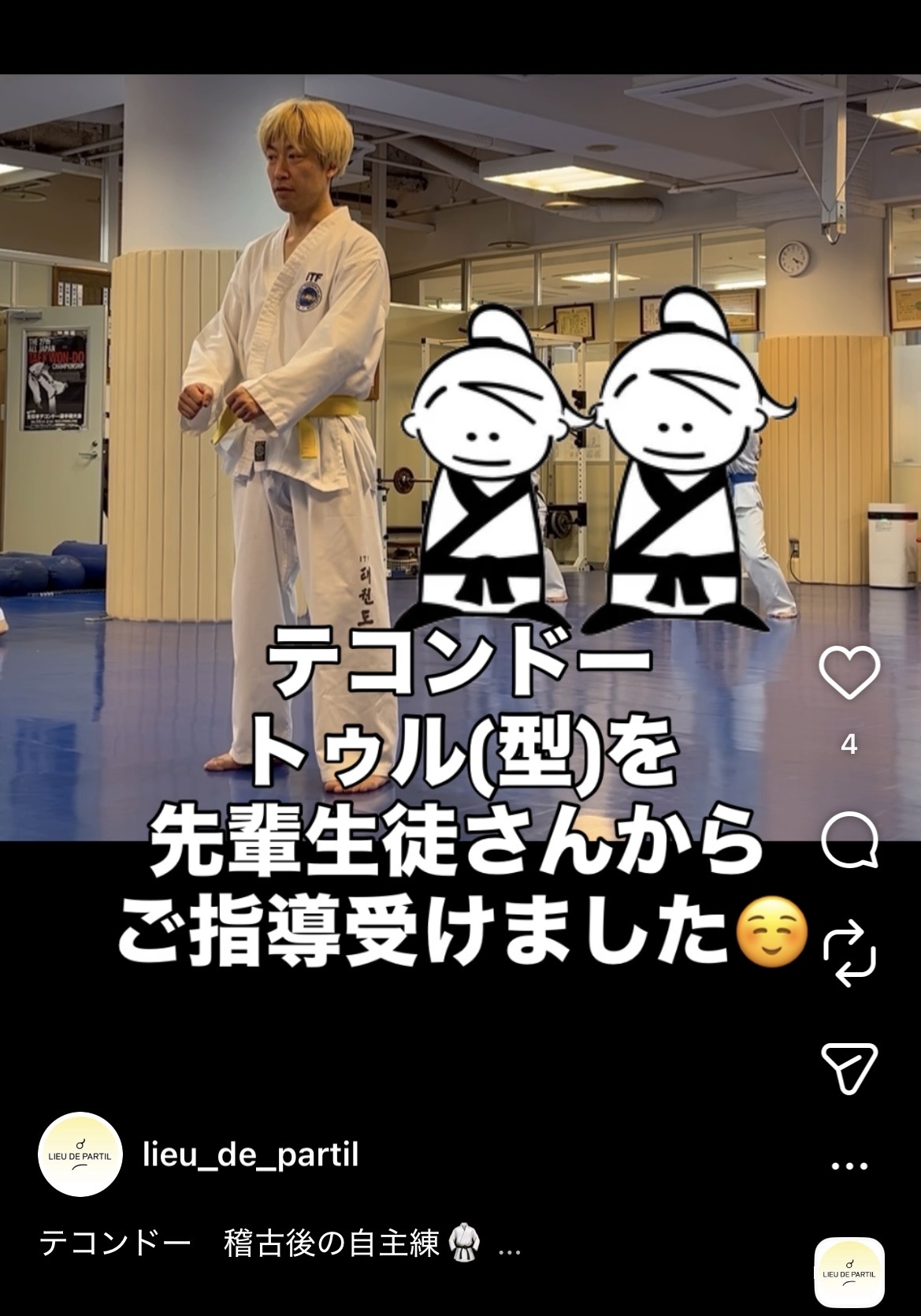 今日は先日に行った「テコンドー」での練習風景をInstagramに動画を上げたので、そこから抜粋しました^o^
