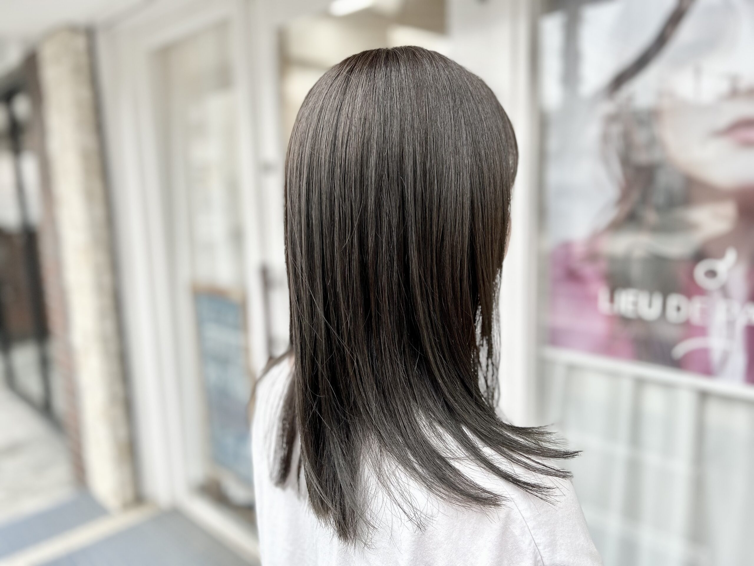 明度がそこまで高くないカラーリングなのに、透け感と色味がキレイなオリーブブラウン♪