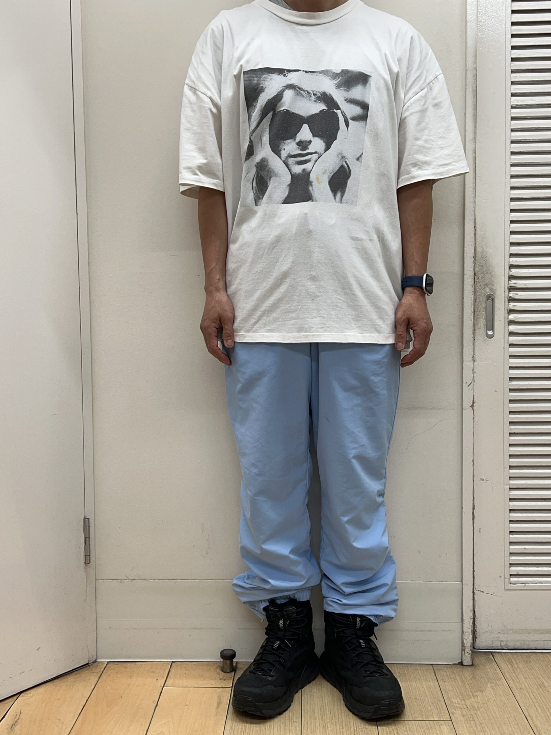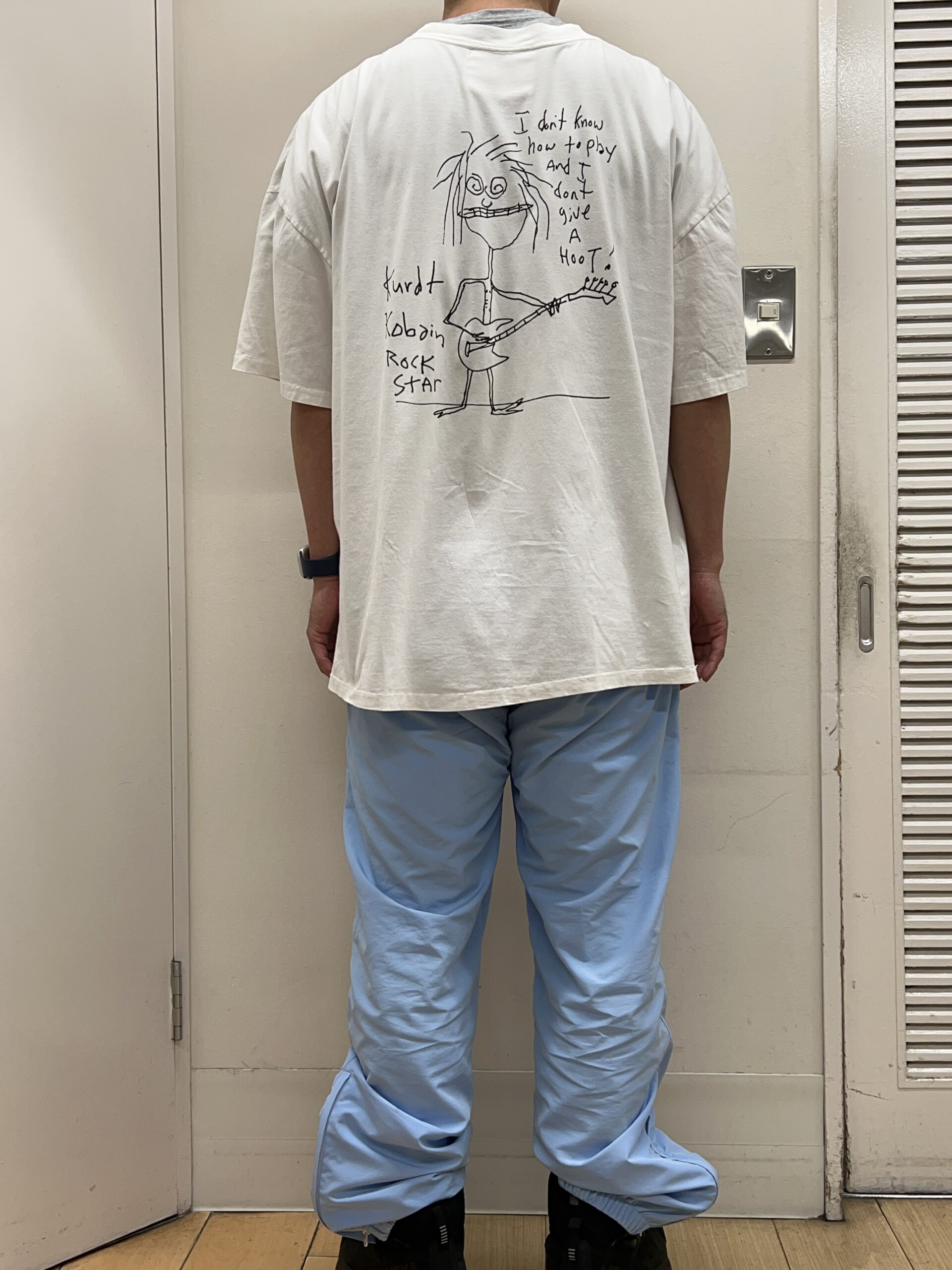 フロントの大胆な顔写真プリントとバックプリントがかわいくて購入したのですが、メッセージはどうやらNIRVANAのカート・コバーンを少しディスってるものらしいです♪