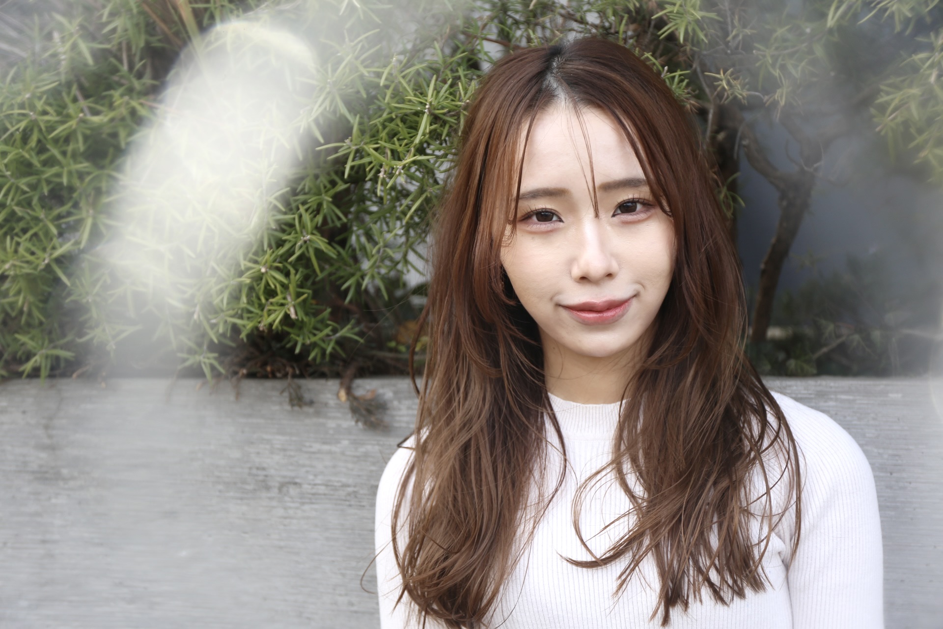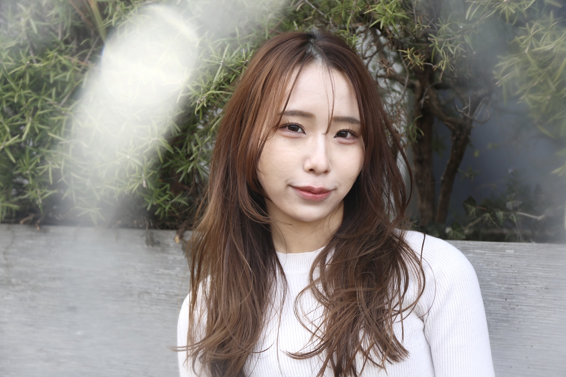 顔周りとトップにレイヤーをしっかり入れた動きのあるスタイル。軽くなりすぎないように下の重みはそのままいかして作っています。